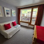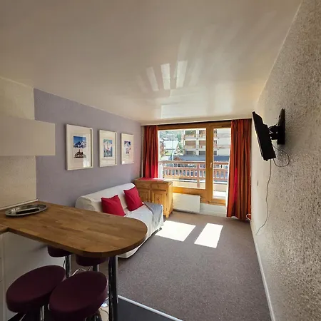 Le Waala 50 Joli Studio Proche Des Pistes heeft uitzicht op de berg en heeft een opslagruimte, een balkon en een zitruimte. Daarnaast vindt u er een apart toilet en een douche.